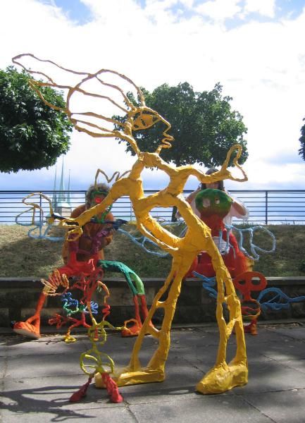 gebaut aus Weidenruten, farbig bemalt, entstanden bereits 2004 in Berlin (im Britzer Garten),