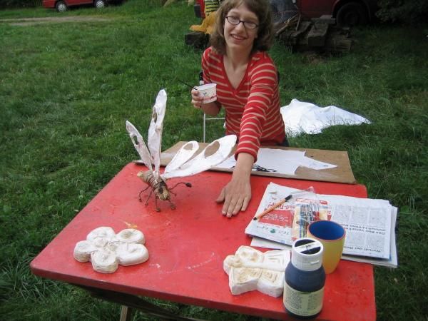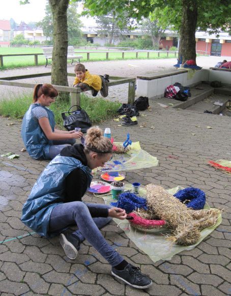 Im Rahmen von 3-tägigen Schul-Kunstprojekten in Bad Harzburg (Haupt-und Realschule), Berlin (Fläming-Grundschule) und in Erfurt (Kunst- und Designschule IMAGO e.V.) wurden künstlerische Objekte gebaut, die in Bäumen auf dem Schulgelände installiert wurden. Dies sind z.B. Käfer, Rieseninsekten, Bienen, Kanarienvögel, Pleitegeier, kleine Drachen. Gebaut aus Stroh in Kombination mit Draht oder Strick werden die Objekte mit Farben bemalt, so dass in den Bäumen ein buntes „Getümmel“ entsteht.