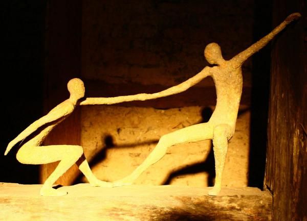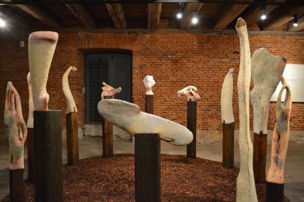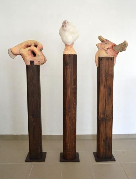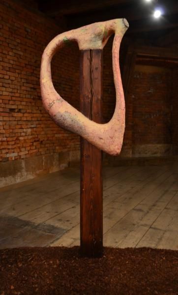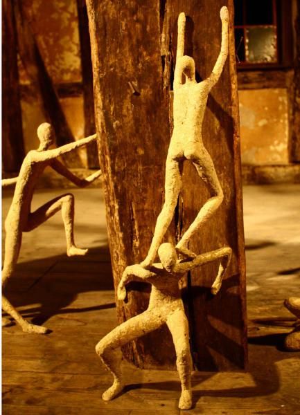 Size of the individual figures approx. 30 cm - 40 cm, Papierstein®, wooden beams, 2009/10, Eisenmeurerscheune in Hann. mouths