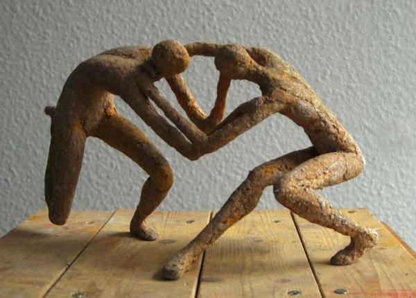 Größe der einzelnen Figuren ca. 30 cm - 40 cm, Papierstein®, Holzbalken, 2009/10,