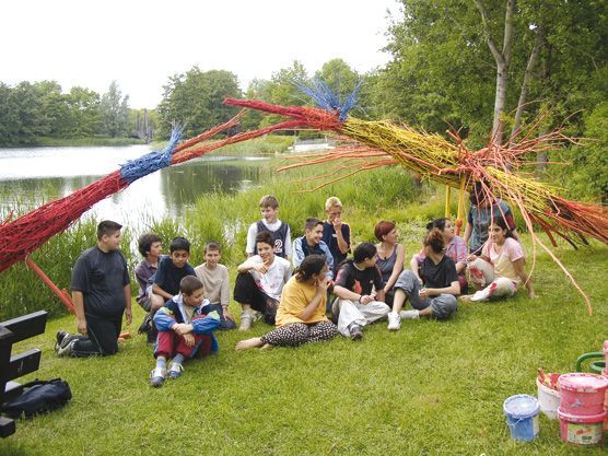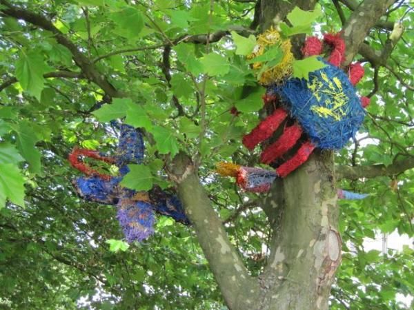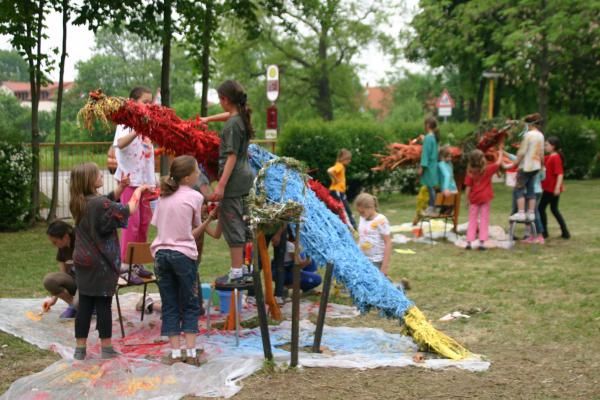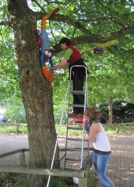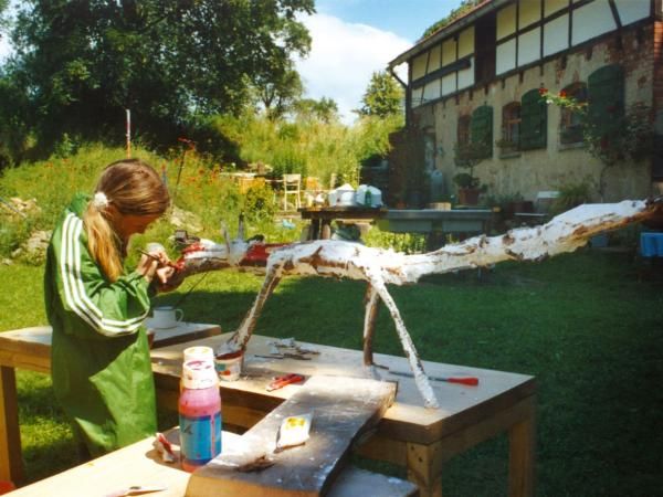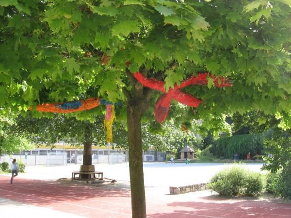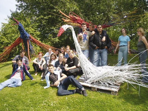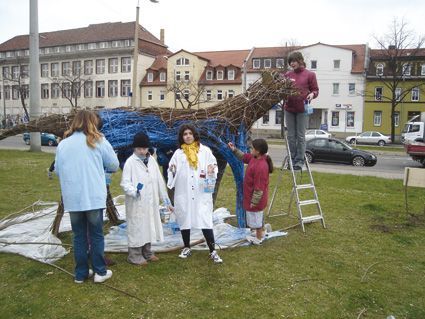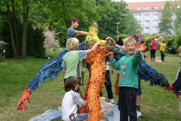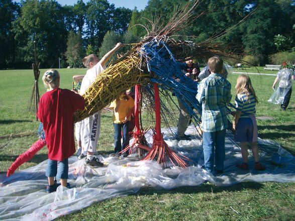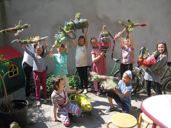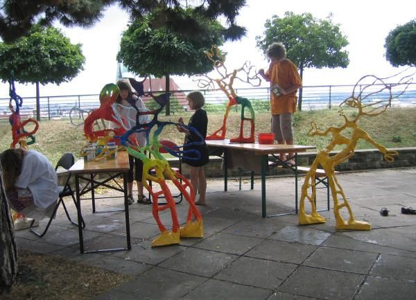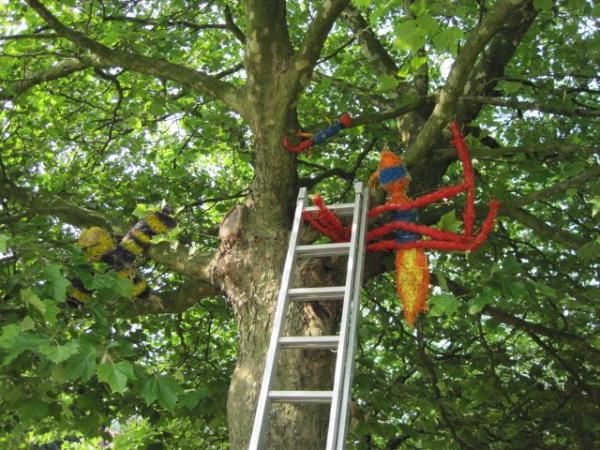 Im Rahmen von 3-tägigen Schul-Kunstprojekten in Bad Harzburg (Haupt-und Realschule), Berlin (Fläming-Grundschule) und in Erfurt (Kunst- und Designschule IMAGO e.V.) wurden künstlerische Objekte gebaut, die in Bäumen auf dem Schulgelände installiert wurden. Dies sind z.B. Käfer, Rieseninsekten, Bienen, Kanarienvögel, Pleitegeier, kleine Drachen. Gebaut aus Stroh in Kombination mit Draht oder Strick werden die Objekte mit Farben bemalt, so dass in den Bäumen ein buntes „Getümmel“ entsteht.