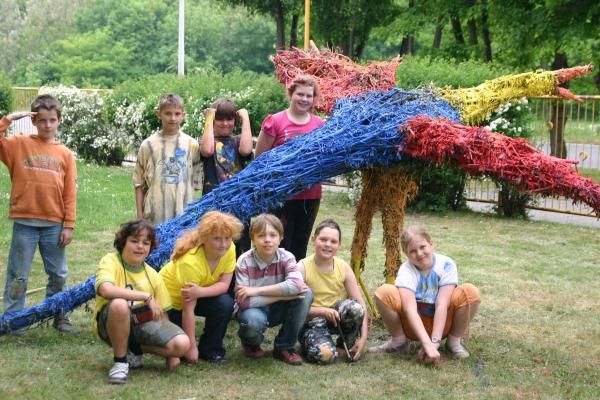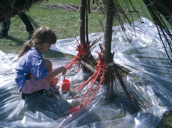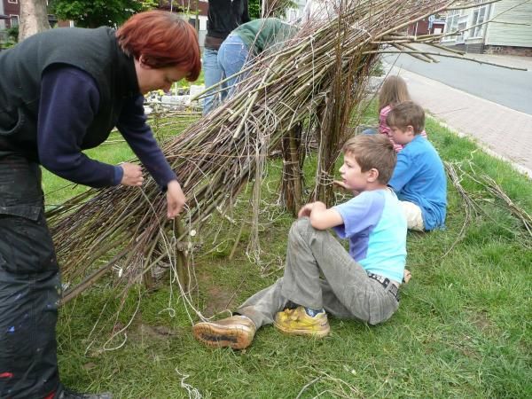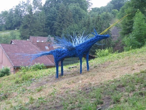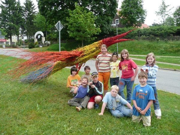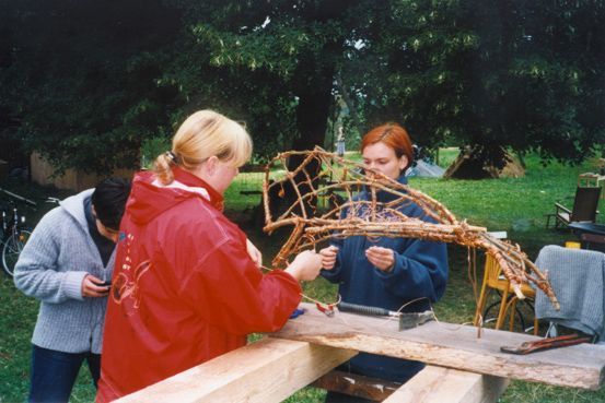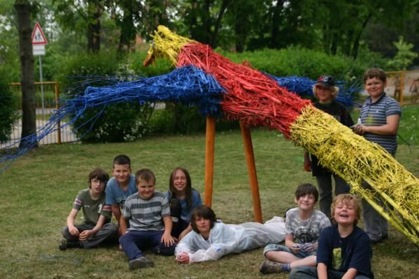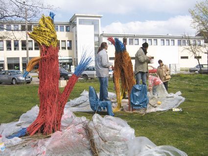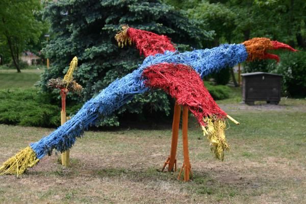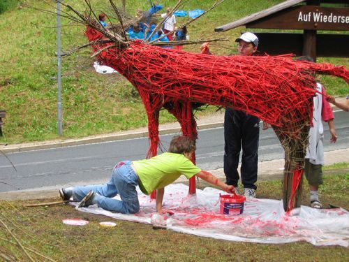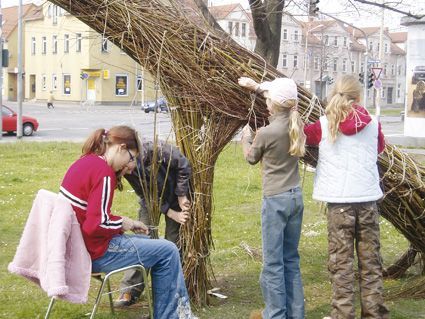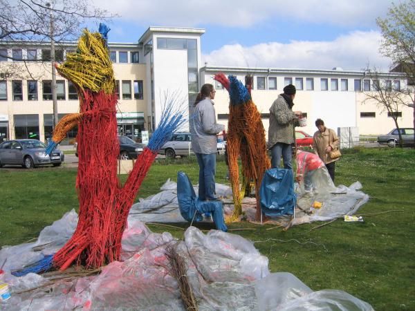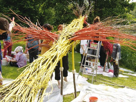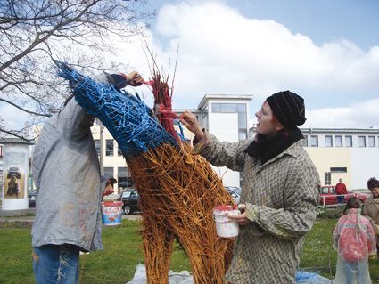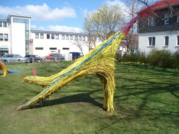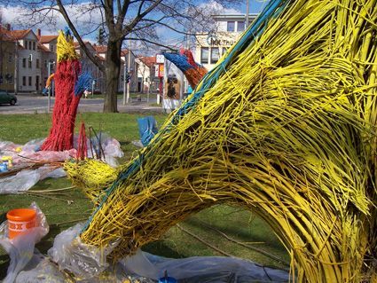gebaut aus Weidenruten, farbig bemalt, entstanden bereits 2004 in Berlin (im Britzer Garten),